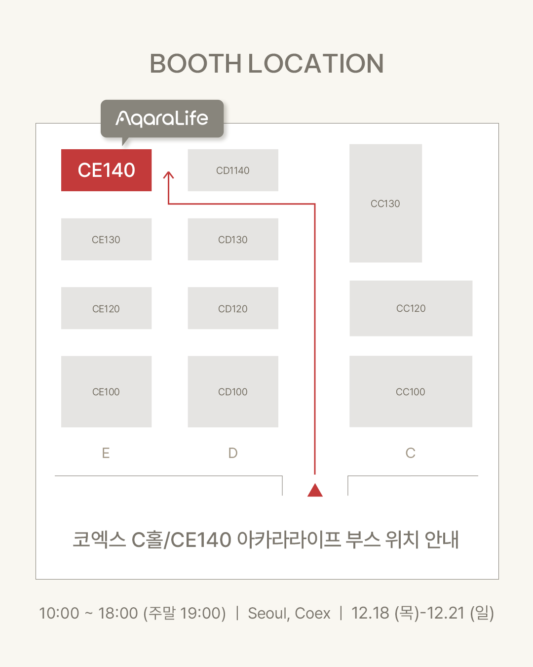12/18 - 12/21 , 코엑스 3층 C홀 CE140 아카라라이프